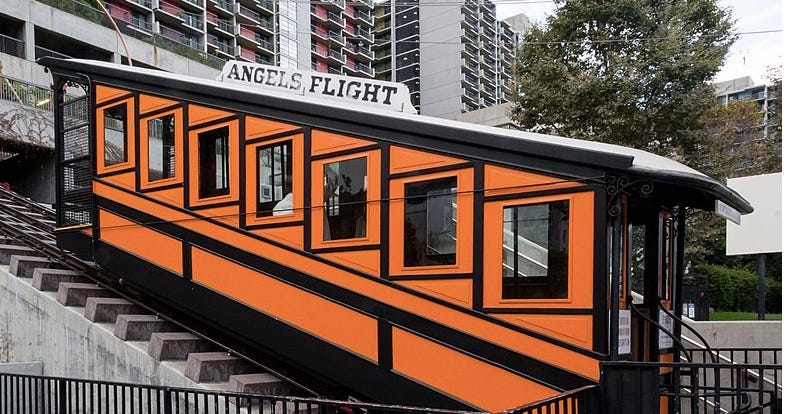 When we passed a house clinging to the side of the canyon, overlooking the freeway, I saw Connelly’s iconic character Harry Bosch inside. As we approached the place where a body had been found in a drainage tunnel off Mulholland, I had a reference that would never appear on a map. Seeing the more well-known landmarks – Parker Center, the Police Academy, and Angel’s Flight created coordinates that helped me begin to map out the city for myself.
