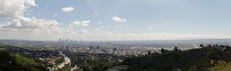 Until that moment, I’d thought of LA as an enormous, distant, wind-scorched, jaded but glittery city. There were the hissing summer lawns and paved parking lots of Joni Mitchell, the images of movie stars, earthquakes, fires, riots, and crime that filled the news. All of it was interesting but irrelevant to me. I was an East Coast person. End of story. Even the flight out that Valentine’s Day weekend in 1998 felt like a fun exotic trip to a place I didn’t really have to know or take seriously. I didn’t realize my husband intended for it to be my introduction to his home, history, and, it turns out, the place to which he very much wanted to return - with me. It worked, sort of. But that’s another story.