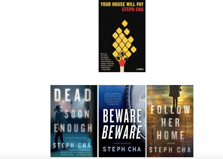Your House Will Pay is Steph Cha’s fourth novel and the first outside of her Juniper Song Series. I’m half-way through this novel and had to tear myself away in order to write this newsletter. Set in Los Angeles, the story is about death, revenge, and how two families, one Black, one Korean, both American struggle against the forces outside and within themselves that would pull them under. It is a uniquely “L.A.” story but not one that an Elroy or a Connelly could tell. This story is told from the perspectives of those who are most deeply affected by it. Inspired by the real-life shooting of Latasha Harlins by the owner of the deli where she’d gone to buy some orange juice in the early 90s, Cha creates a story that takes us further than any headlines could do. She brings us into the hearts and minds of the families on both sides of the tragedy and, without offering excuses or apologies or justifications - asks us to listen before we leap to judgement. This is a powerful read and I can’t wait to get back to it. If you are new to Steph Cha, read more about her and the Juniper Song series here on her website and on our Spark Community Recommendations page at bookshop.org.
