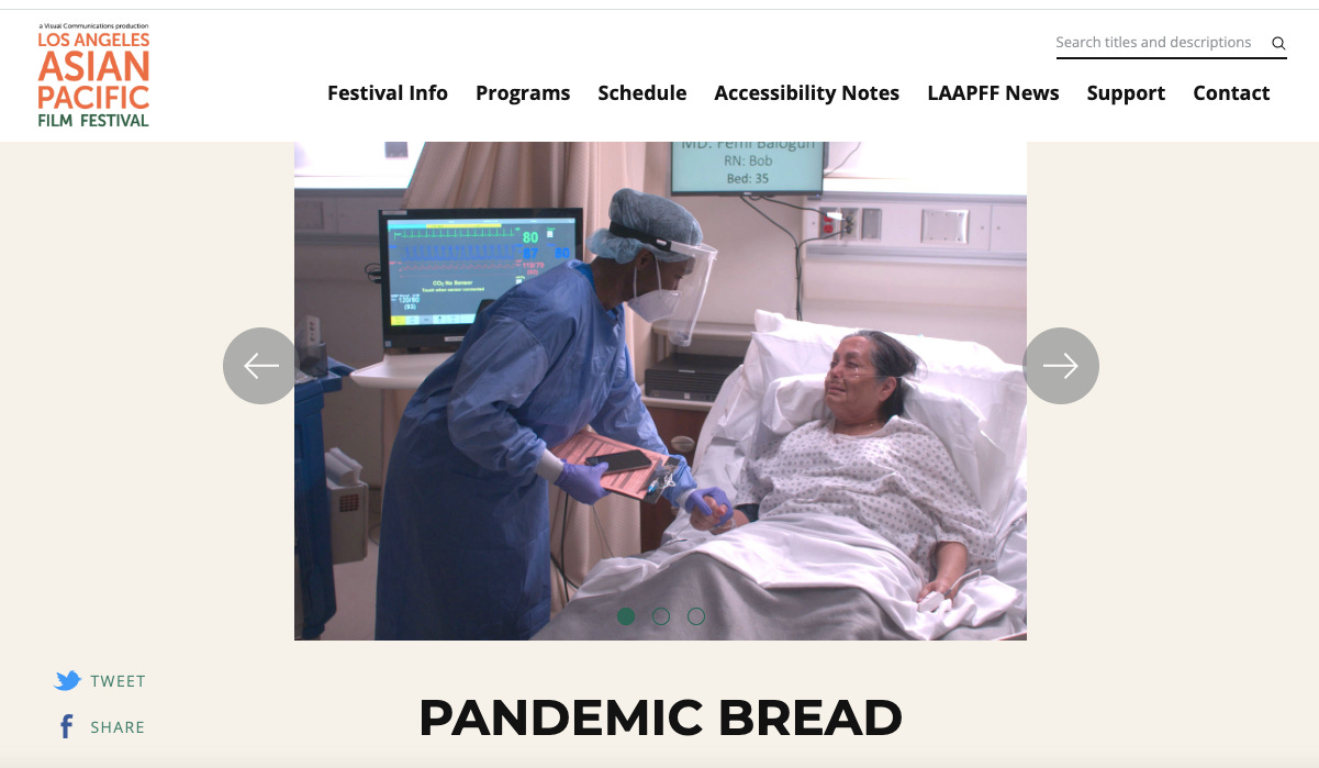 I recently spoke to Marivi about The Mango Bride, “Pandemic Bread” , and her journey as a writer which began in the Philippines where she was born and raised in comfortable surroundings. She shares how her own experience as an immigrant to the United States has informed not only her writing but her efforts to support women-at-risk as well as other writers, particularly writers of color. The Mango Bride, for example, is required reading for students of immigration law at California Western School of Law. She speaks to the classes every year to share with future attorneys the stories she has encountered as an interpreter. She collaborated with a team for the Saving Beverly Literary Fundraising Adventure which raised money for a legal-aid organization focusing on domestic abuse victims. Another collaboration resulted in conference Centering the Margins: Conversations With Writers of Color when she realized that the inaugural San Diego Festival of Books had no writers of color in its lineup. While leading a flash fiction class in Tagalog at UC Berkeley last month, she discovered that “Pandemic Bread” is being taught in a literature class there which leads to the kinds of discussions about food, death, and family she hopes the film will spark at next month's premiere.